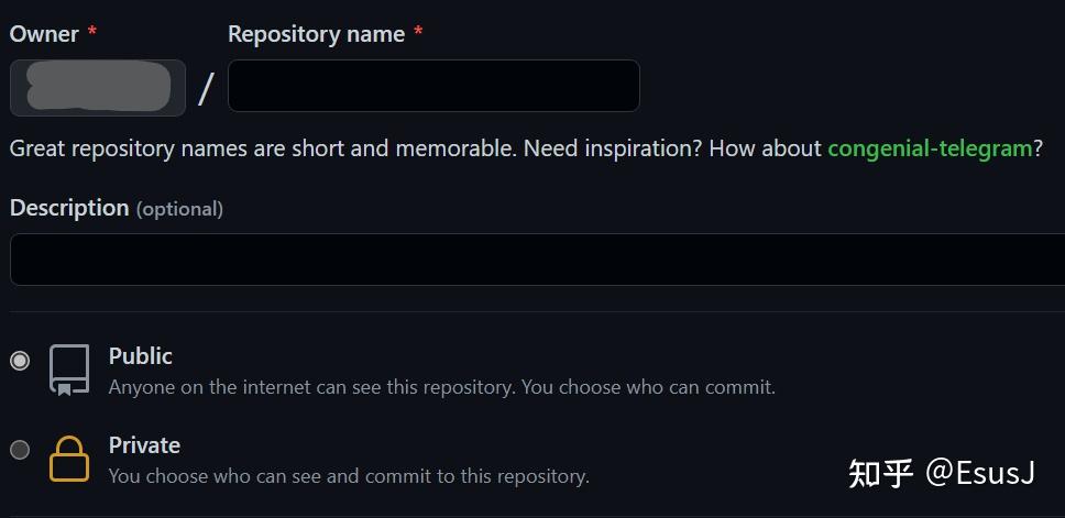 在Repositories name任意填写项目名(对网站名称等等没有影响)