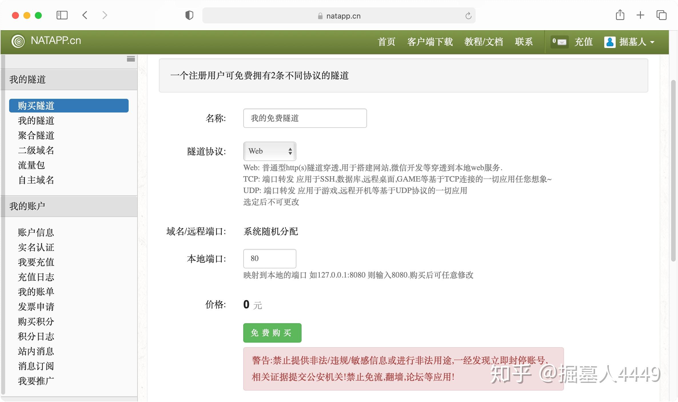 在此处也友情提示,请在法律允许的范围内使用内网穿透服务,避免给自己或内网穿透服务提供者带来不必要的麻烦。